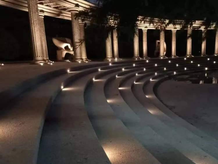 在罗马广场的灯光亮化工程中,台阶下方、立柱和三处装饰物都增加了照明设施。被点亮后的罗马广场不仅是孩子们嬉戏的好去处,也成了夏夜里公园内一处新景观。