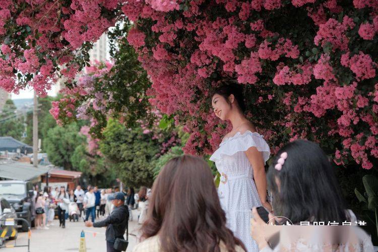 烈日炎炎下,紫薇花在文创园区里恣意绽放,满树繁花正应了“盛夏绿遮眼,此花红满堂”的赞语。目前,园区内有200多棵紫薇花,颜色艳丽,主要有粉色、玫红、白色等。其中,最受欢迎的是有两层楼高的“紫薇花瀑布”,近段时间以来,每天能吸引大量市民游客来打卡拍照。市民周先生说:“最近朋友圈看到好多朋友发昆明紫薇花美图,非常惹人心动,决定来看一看。这么高的紫薇花瀑布,的确太出片了!”