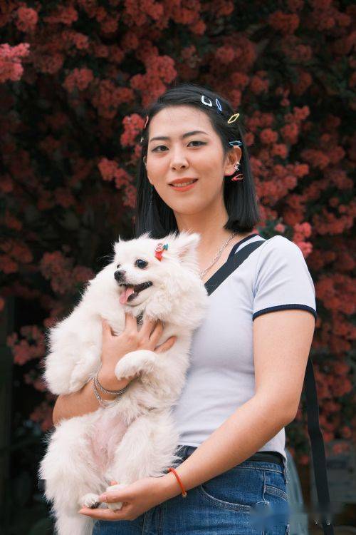 紫薇花吸引了游客驻足,就连萌宠狗狗都被主人安排一起拍照留念