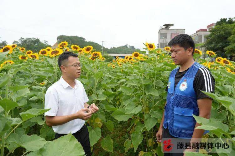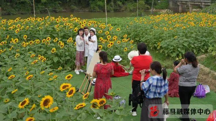 据悉,河口村紧紧围绕党的二十大提出的全面推进乡村振兴精神,以发展特色乡村文旅产业为切入点,依托后盾单位南方电网广西梧州供电局援建,打造了集种养、休闲观光、娱乐于一体的藤穗农耕园,壮大发展了村集体经济。目前,藤穗农耕园初步建成总占地约30亩,集向日葵基地、蓝莓果园、草莓园、格桑花基地、烧烤场等于一体的乡村文旅基地。6月是向日葵灿烂盛开的季节,工作日每天吸引游客超400人次,周末每天吸引游客超1000人次。