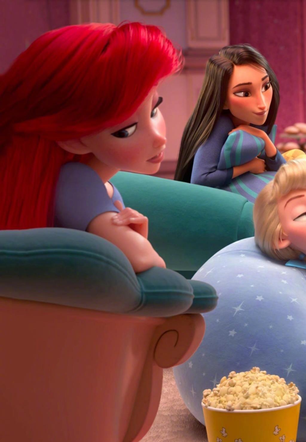 艾莎女王的发型和发量真是让人羡慕。他身上衣服上的字,非常醒目,让人过目不忘。上面写着“leletitgo”,很适合她的主题曲。以上所有截图均来自迪士尼官方电影《无敌破新王2》,中间的女孩就是这部动画的主角云妮,这部分收集的大量迪士尼公主很有意思,大家也可以看看迪士尼公主日常家居装饰很可爱,推荐朋友们观看。