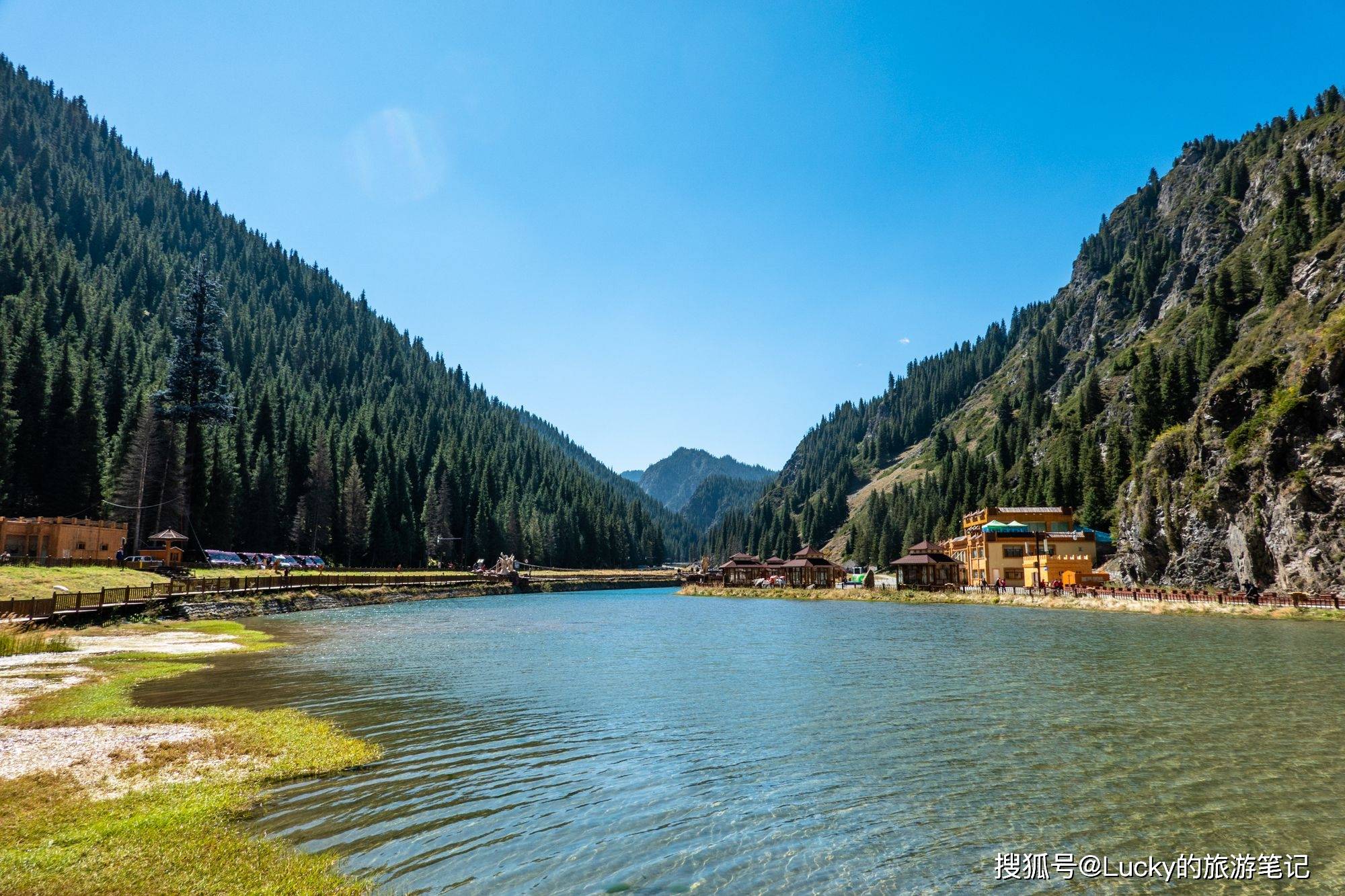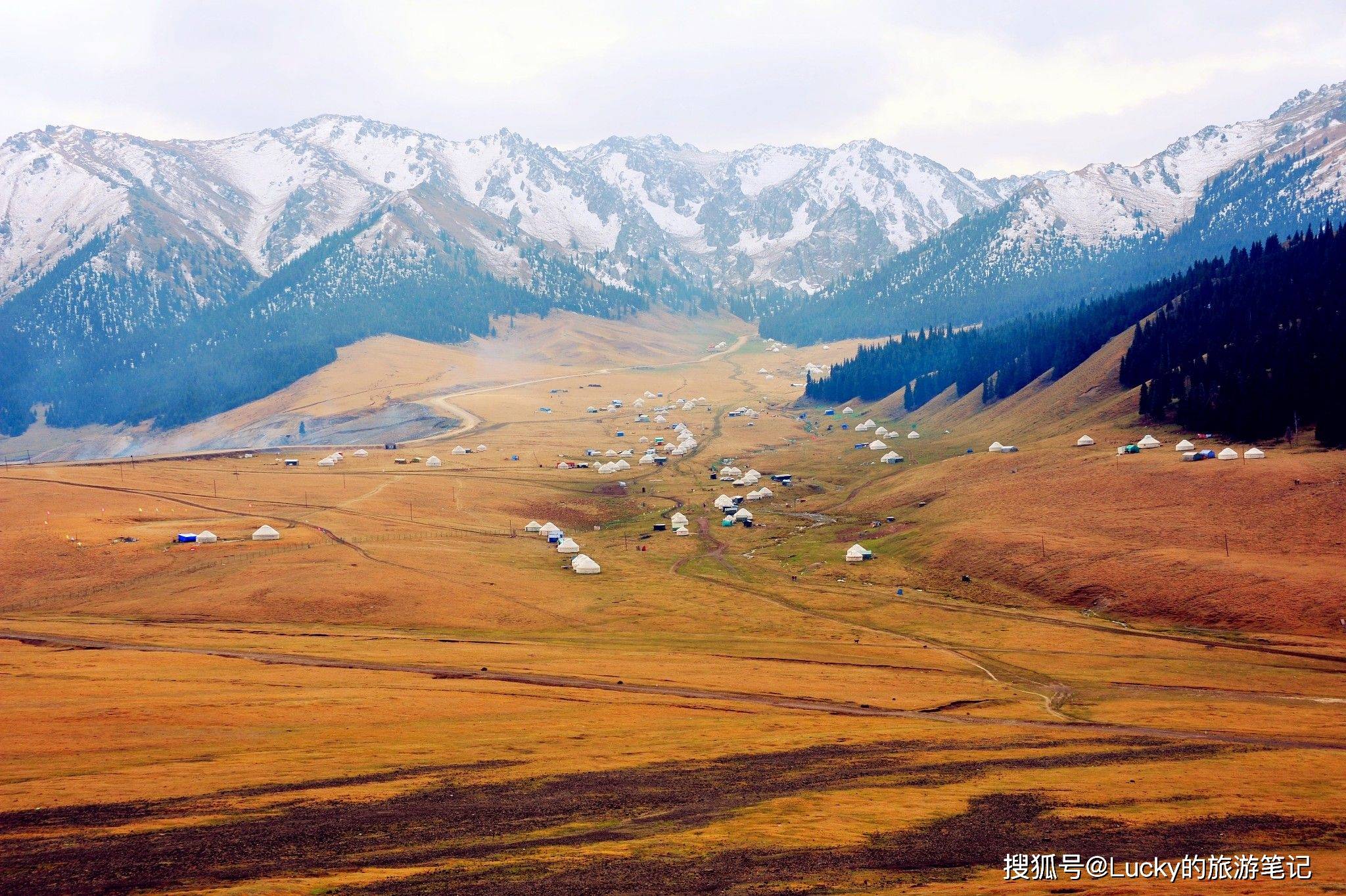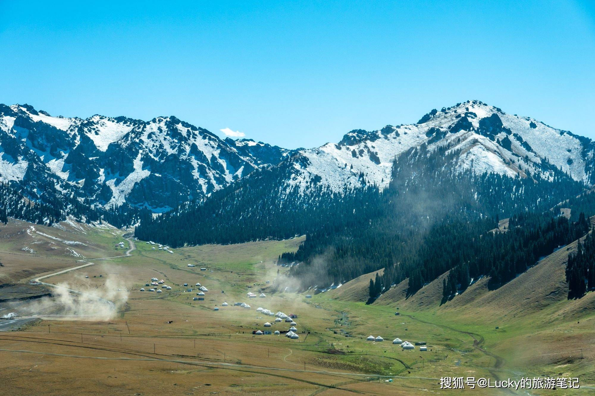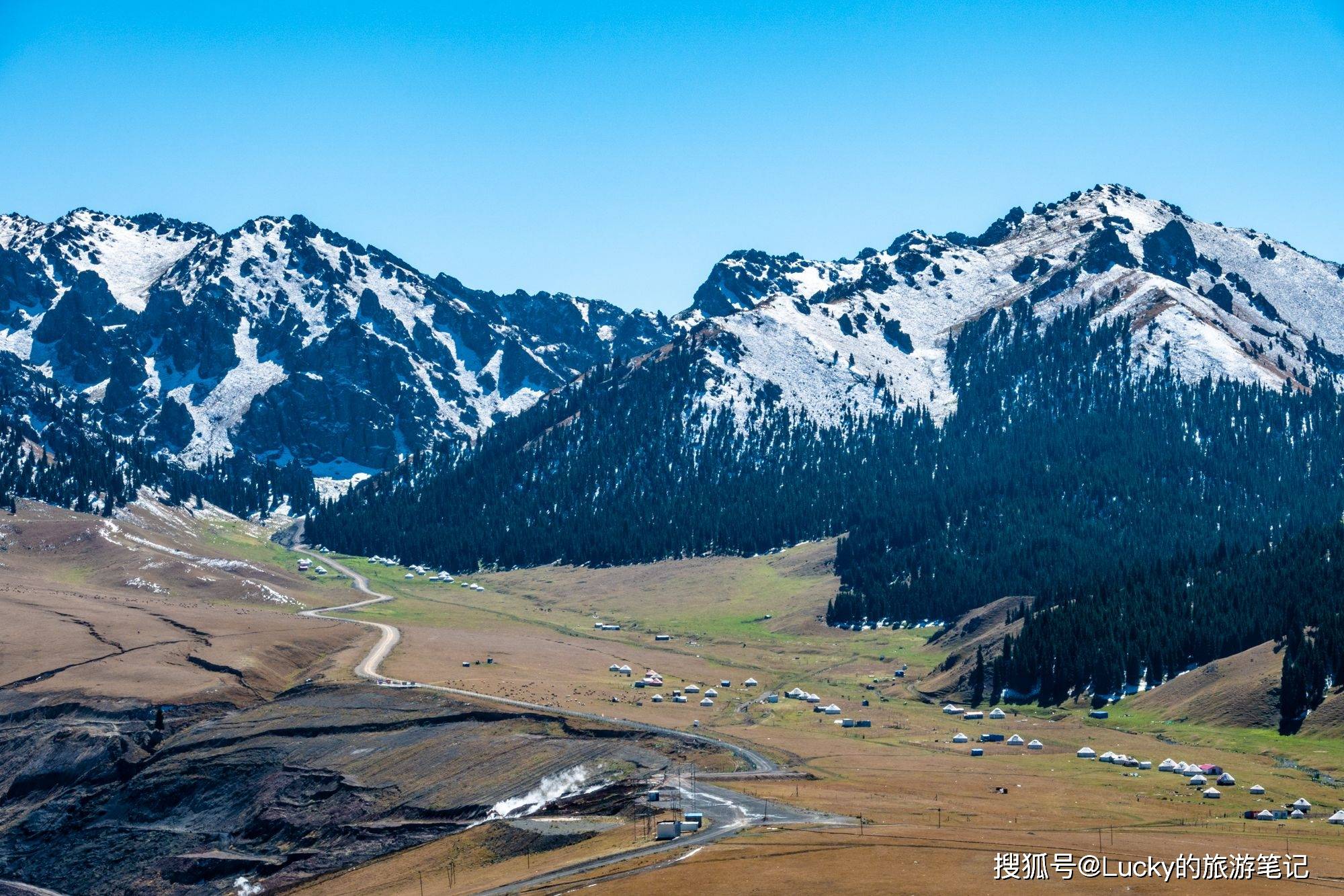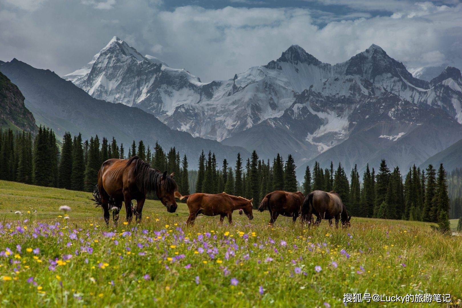 这个地方涵盖了新疆除了沙漠以外的所有自然景观。它是一个以雪山、森林、湖泊和草原为主的自然风景区,是当地居民夏季登山游览的目的地。峡谷的两侧是经过风雕雨刻形成的红褐色岩石,峡谷弯曲而幽深,各种形态的山峦直插云霄。你可以欣赏到新疆所有的景色,每个地方都是摄影的绝佳地点。峡谷内有许多哈萨克牧民的毡房,提供羊肉等特色美食,你可以在山水之间享用美味,非常惬意。