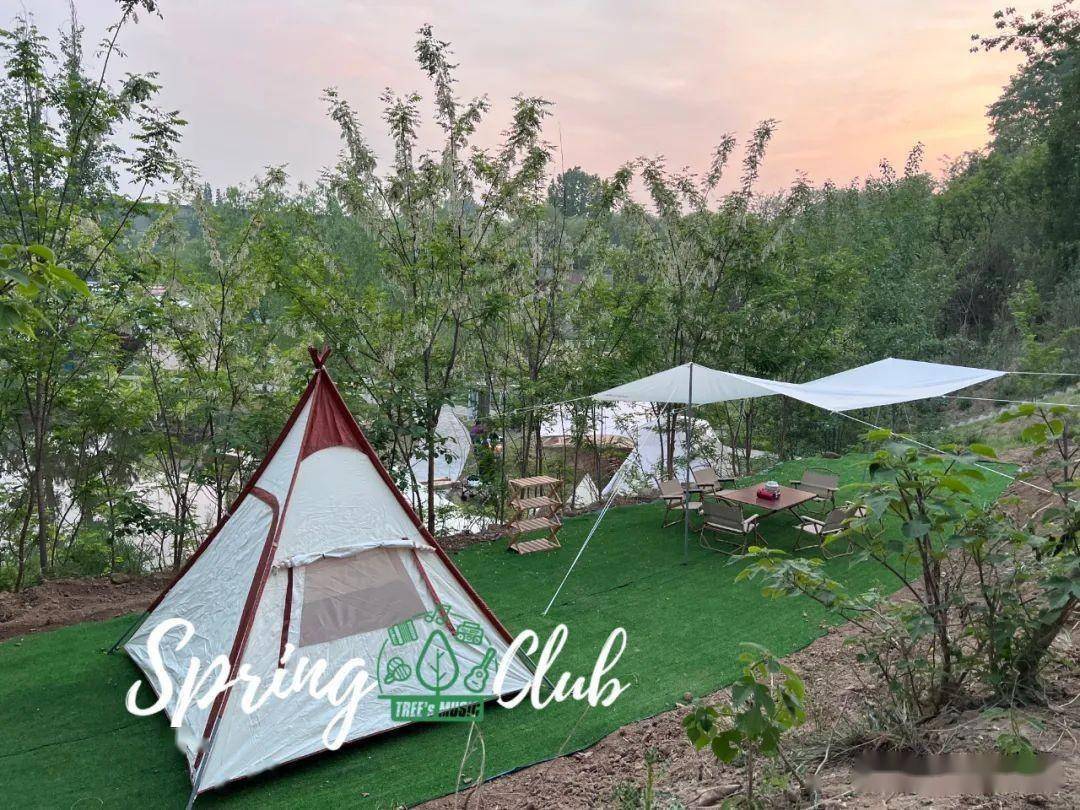 设有野奢天幕帐篷、轻奢酒店帐篷、星空小酒馆、溪谷广场、泉水泳池、撒野乐园等多种配套设施,提供飞盘、无动力游乐、泡泡秀、KTV、篝火派对、露天电影、观星、烟花秀等各种露营游玩项目。