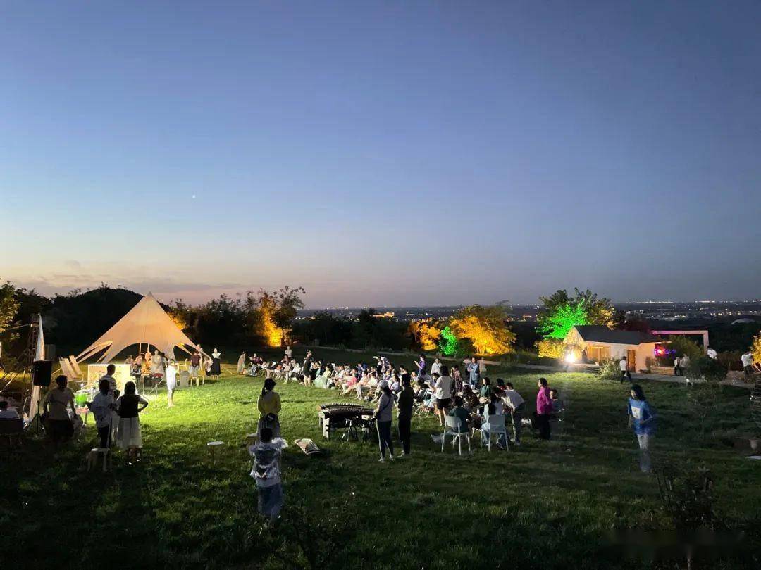 营地组织玉黛湖乡村露营音乐季活动,活动设有天空之伞露营集会、乐队表演、美食尽享、抢板凳游戏互动等多个环节。与“玉黛湖乡村露营音乐季”一样值得打卡的还有大猪滑梯、多人秋千、爱情摩天轮、树神乐园、森林小火车、直升机、秘境婚礼庄园等众多通玩项目。