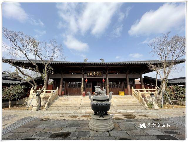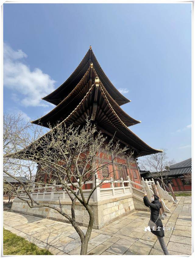 看这屋檐,是不是很奇怪?与北方汉式、闽南式、徽式都不一样,甚至也不是佛教也不是道教,是晚唐风格的三重檐塔,这座塔不是古迹,是近代新造的,据说站在塔顶环廊上,广富林的景色一览无余;