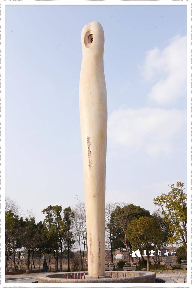 继续往前逛,广富林的核心地标,骨针广场,一看就明白了。这是广富林出土最多的东西,骨针,就是古人用来缝补衣服和渔网用的,古代钢铁冶炼制造技术不过关,古人都是用动物骨头来制作缝衣针的,不过我好奇的是,上面那个孔是怎么弄出来的?骨头那么脆,一砸就断了,古代又没有电钻,这是怎么做到的啊!