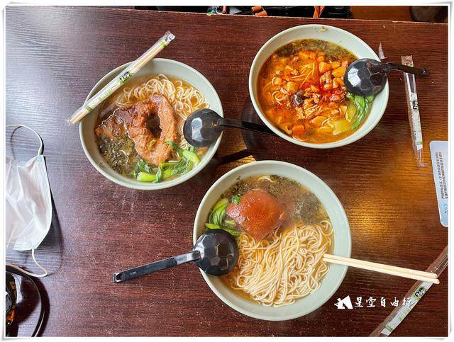 来看看上海传统的大排面和辣肉面(其实一点点都不辣,还很甜),要说上海的面条与北方的面条最大的区别是什么,我觉得就是面和汤的配合问题,北方的面是和汤一起煮的,而上海的面条和汤是分开煮的,吃的时候再把面条捞进汤里。北方面条汤浓味厚,上海面条清爽劲道,各有特色,都很好吃,如果你来上海一定要尝尝上海本地面条,不过,是甜的哦!要有心理准备,哈哈哈!