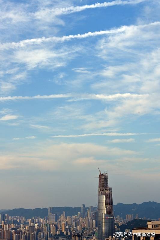 近日,重庆市区透视度格外强烈,天空蔚蓝,飞机自由飞翔,地上高楼林立。梦幻情景,再次展现了重庆别具一格的美感。(《中国基建报》特邀通讯员 张华先)