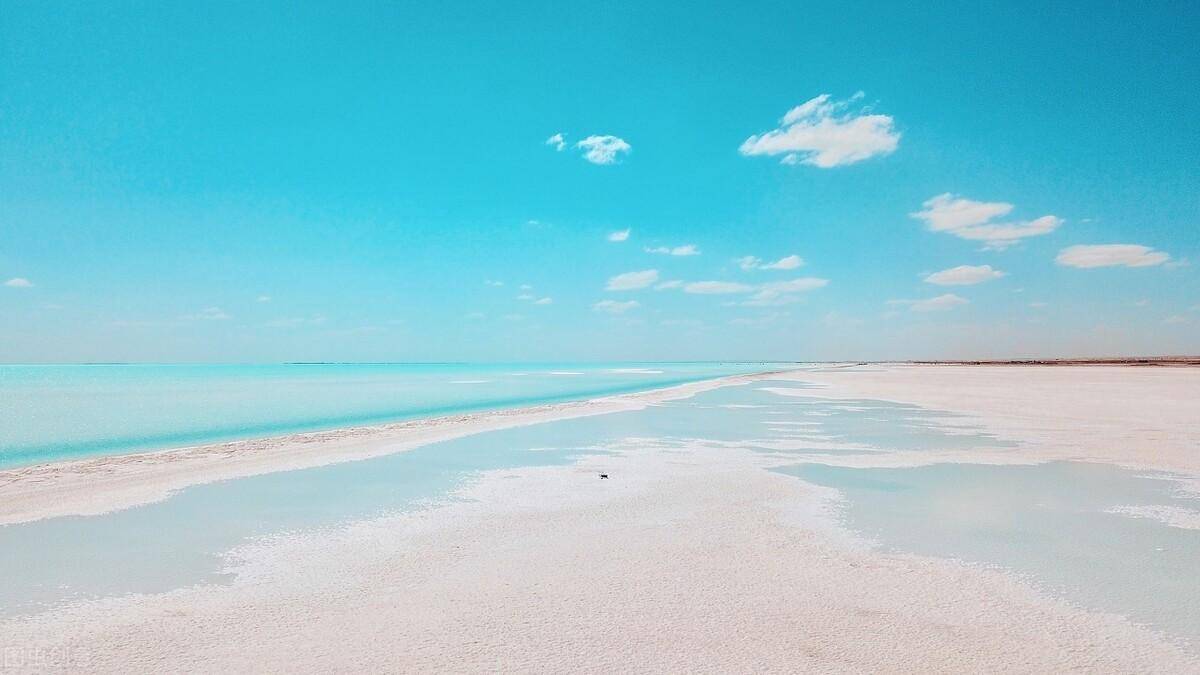 东台吉乃尔湖,尚未被开发的自然湖面。接近透明的湖水,躺在钙化的盐滩上,比马尔代夫蓝的纯粹。