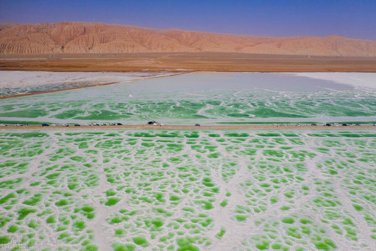 东台是浩瀚通透的美,翡翠湖可以找到所有调色盘上所有的蓝绿色。石墨色的盐碱地把湖水分成不同颜色的盐池。没有一棵草木,却又晶莹如玉。