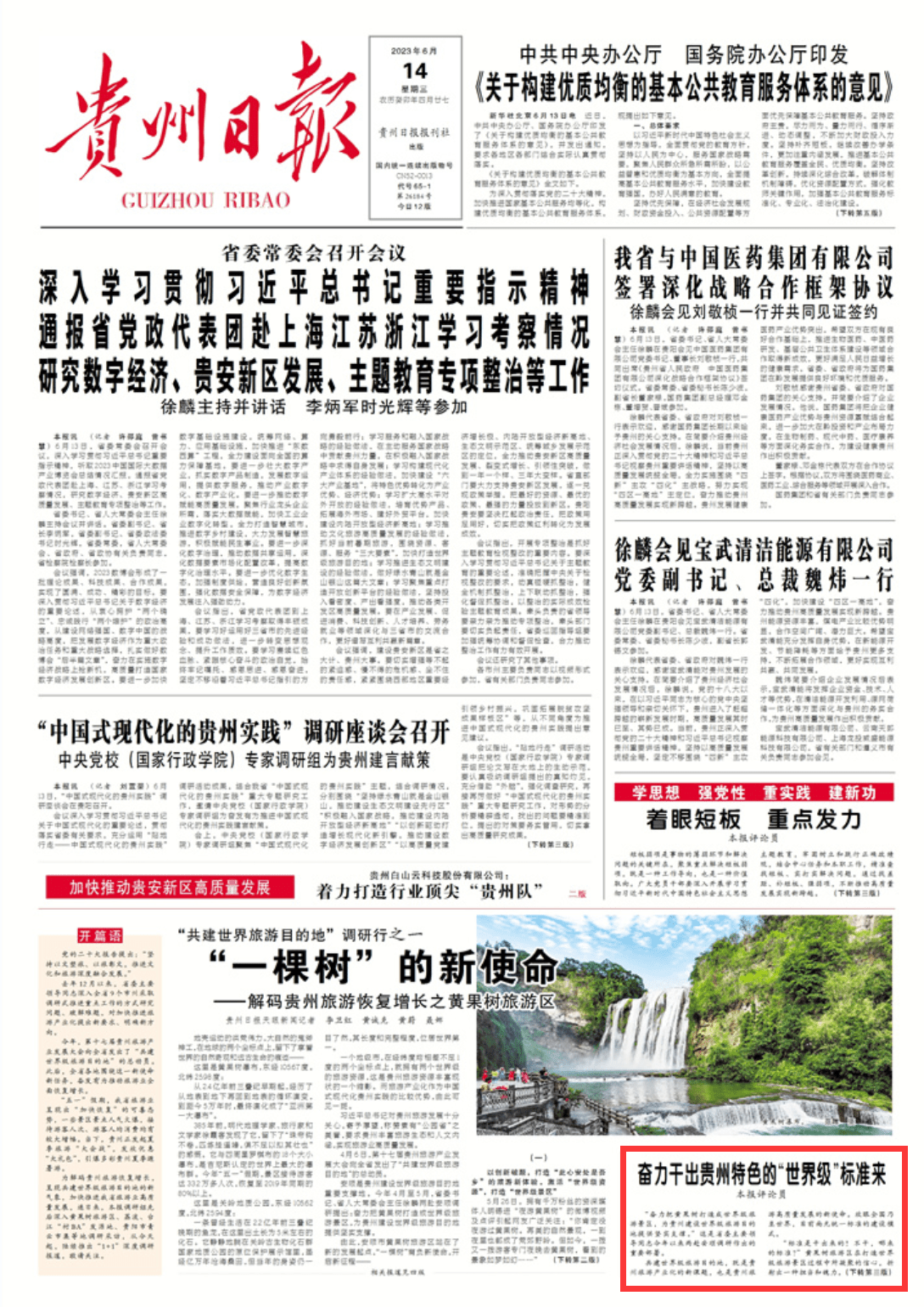 锚定世界级,呼唤硬担当。共建世界级旅游目的地,是贵州旅游产业化新征程上的“同题大考”,没有观望者,只有参与者和探索者。我们期待,贵州各地奋发有为创新探索出更多贵州特色的“世界级”标准来,为共建世界级旅游目的地提供“坚实支撑”!