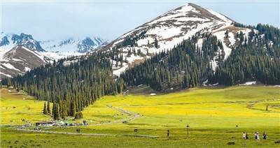 进入夏季以来,新疆维吾尔自治区各地赏花游、民俗游、沙漠游、研学游、露营游等陆续“上新”,图为游客在位于新源县的那拉提旅游风景区观光。新华社记者 王 菲摄