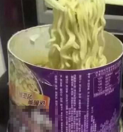 不错,就是泡面,相信每个住过宾馆的人都知道,宾馆的每个房间内都会准备的有2桶泡面和2瓶水,甚至是奶,饮料。一般人是不会动这些吃的的,因为房间里放的价格比外面买的要贵很多。可以说直接翻倍了,一般人不会动,然而男友却打开吃了,不过吃饭方式让我觉得怪异。一般人吃泡面都是这样吃的,我男友却是按照下面的方式吃的。