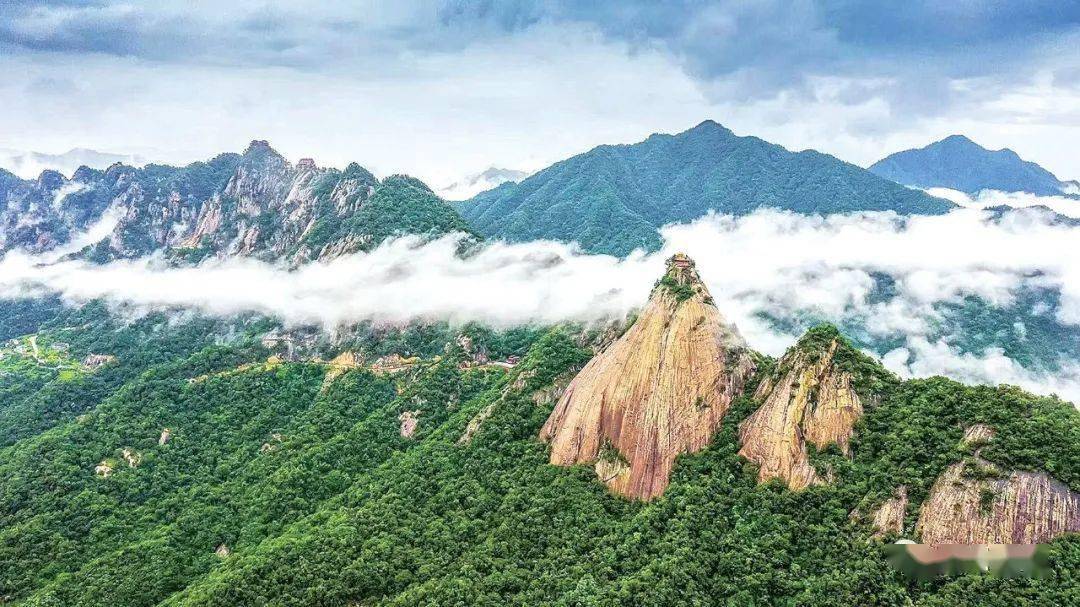 俯瞰下的中原二龙山风景区云雾缭绕,风光旖旎,景色如画。
