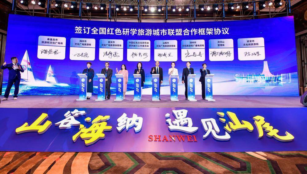 其中,全国红色研学旅游城市联盟合作框架协议签订仪式上,汕尾与延安、井冈山、锦州、韶关、梅州、秦皇岛、虎林、赣州、瑞金、保定、临沂、广元、南充等城市共同加入全国红色研学旅游城市联盟并签订合作框架协议。红色研学旅游城市联盟的成立,将为各联盟城市的旅游推广和全国红色研学旅游的健康发展起到积极有力的促进作用。