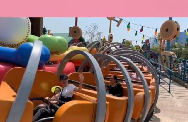 董璇和小酒窝一起坐旋转木马,董璇也笑得非常开心,没有别的烦恼,可以在这个时候尽情陪小酒窝玩耍。