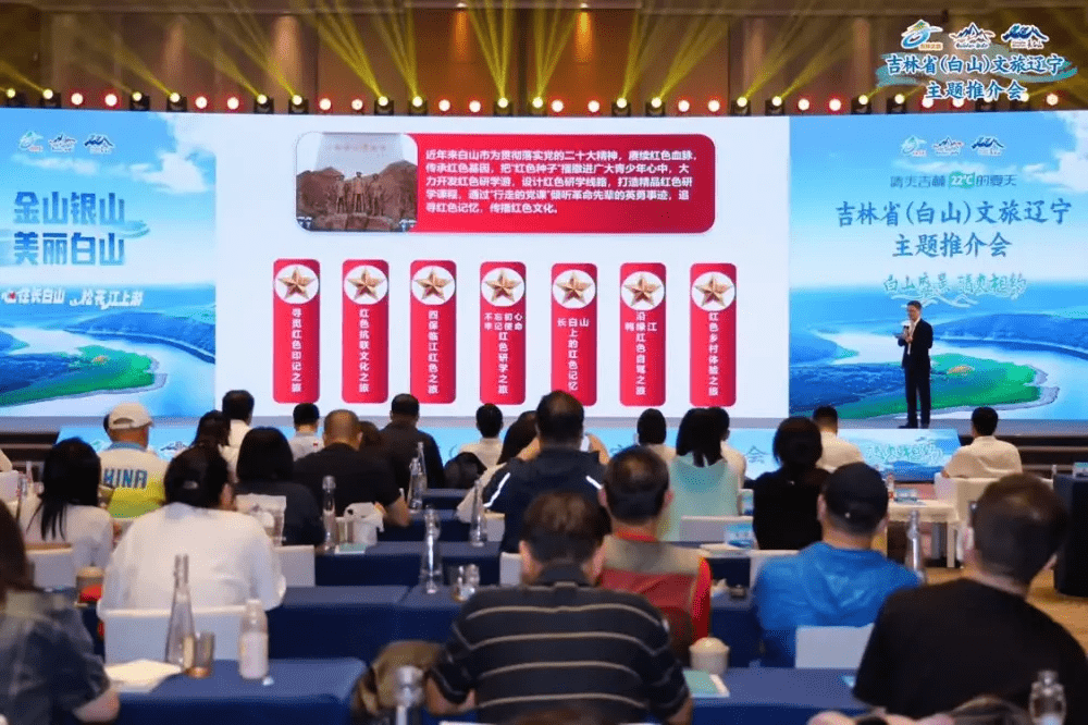 白山市文旅推介员通过现场讲解,向大家介绍了白山市夏季文旅资源、特色产品及红色研学旅游资源,面向辽宁游客推出了白山夏季文旅十大网红打卡地、白山夏季旅游线路和红色研学线路,重点向与会嘉宾推荐了全域生态观光游线路和寻觅红色印记之旅、红色抗联文化之旅、“四保临江”红色之旅三条红色研学线路,全方位、多角度地展示了白山夏季雄奇旖旎的自然风光、积淀深厚的长白山文化与多姿多彩的民族风情,并向辽宁省广大游客发出邀约。