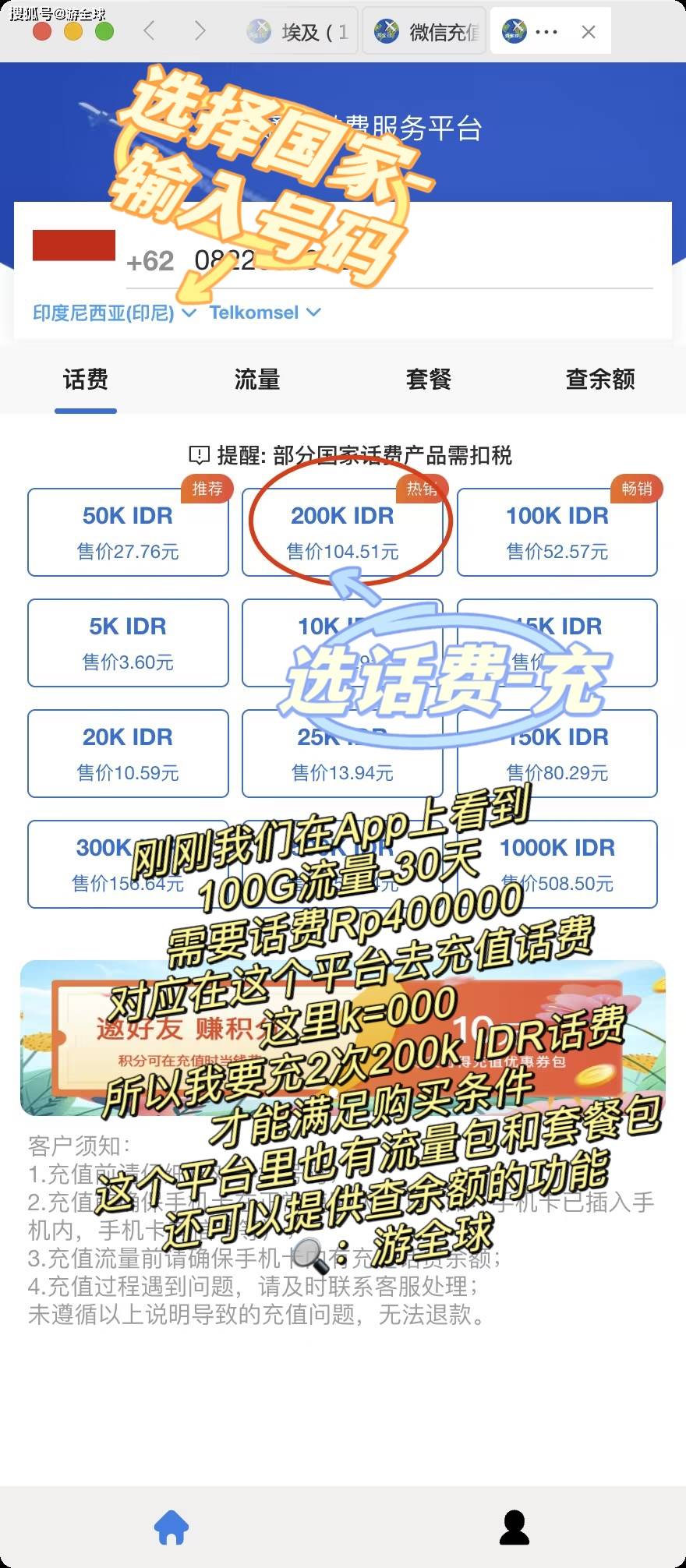 2️⃣图3-中文翻译版本 3️⃣话费流量用完了怎么办?可以去🔍游全球 充值