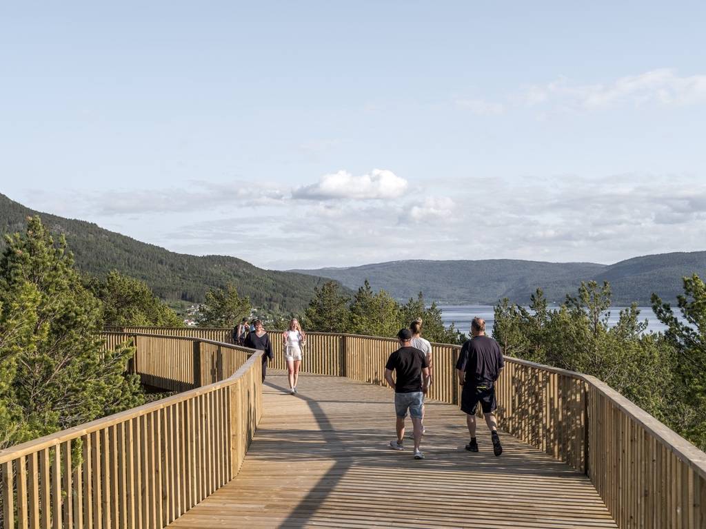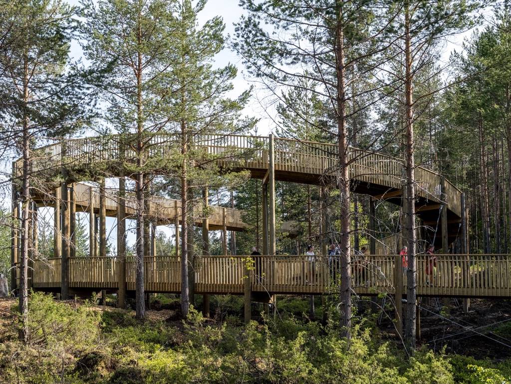 这条空中走廊长一公里,游客可以在松林树梢间漫步到达Klokkarhamaren山顶。