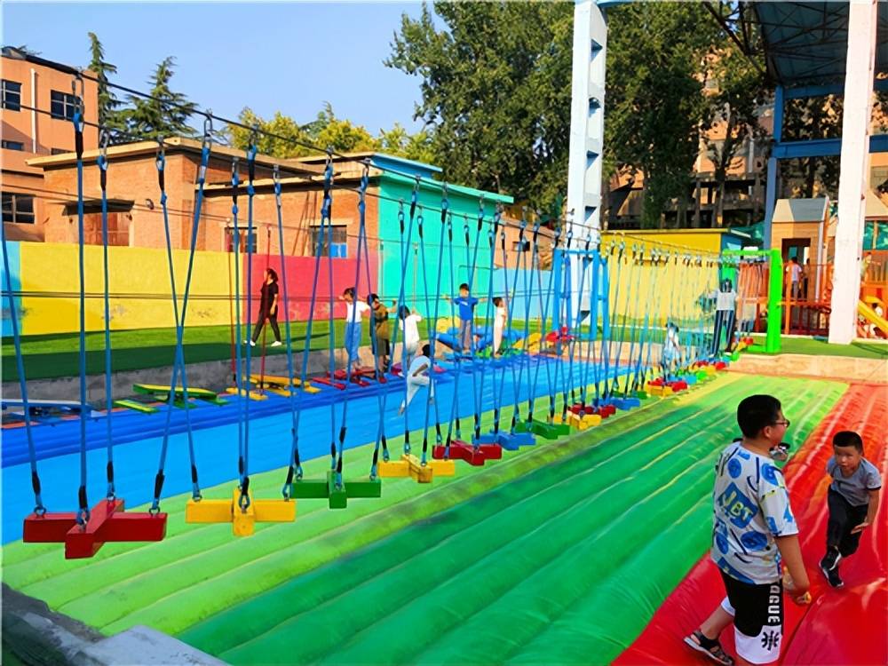 摇摆桥存在适当的高度和难度,需要玩家有适当的勇气和技巧才能玩得好。很多人看到这种挑战性的玩具就会忍不住想尝试一下。