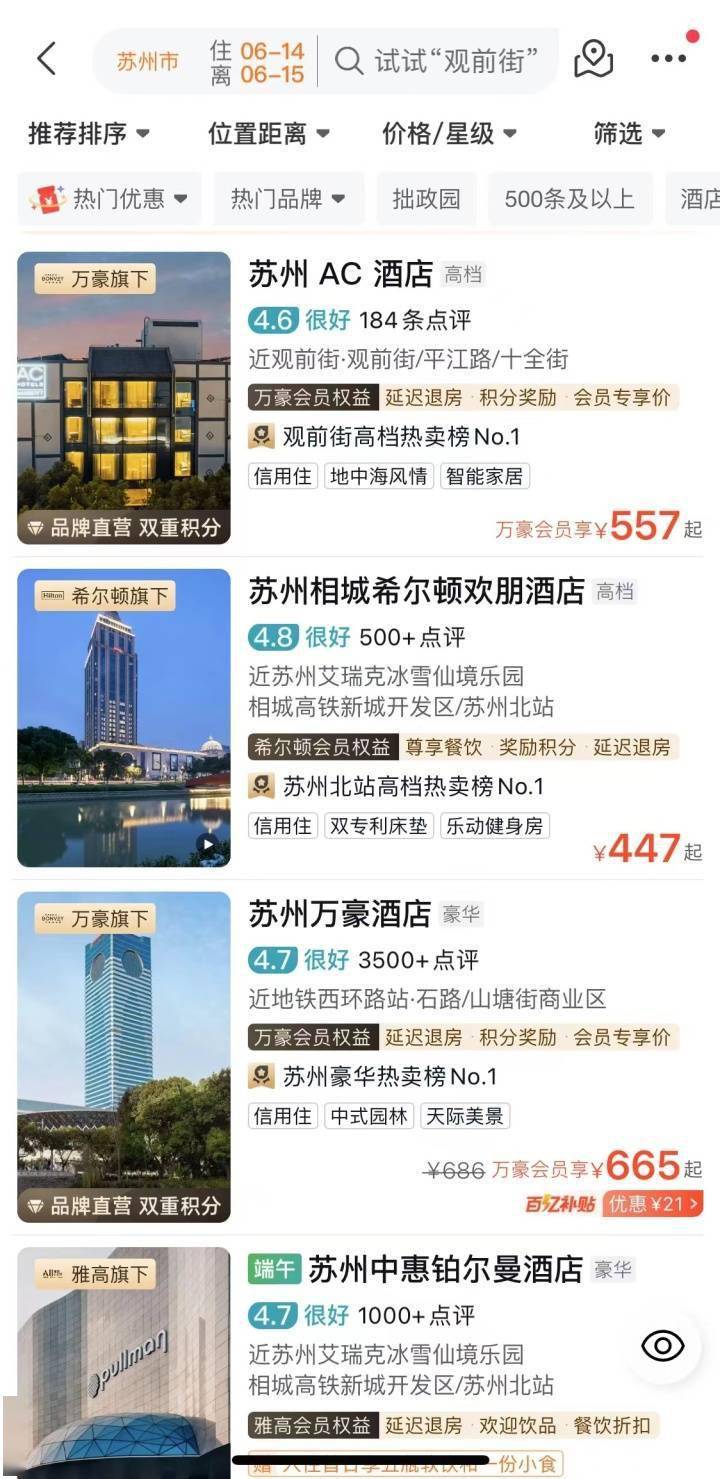 大家关心的酒店价格,潮新闻记者也帮大家查了,除了热门城市以外,大多数城市将迎来“不贵不挤”假期。以苏州为例,6月22日酒店价格与6月14日略微上浮10—20%左右,相比于五一长假,这个价格已经“平价”了。