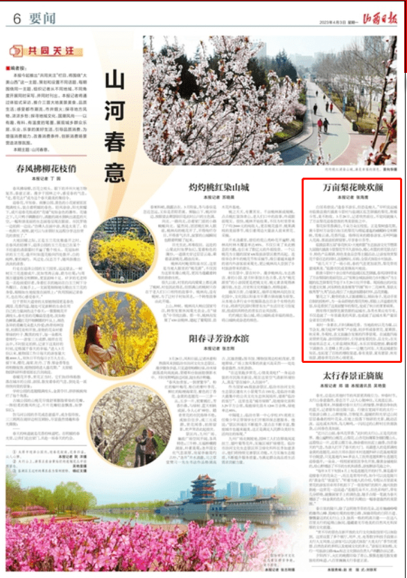 来时一身素衣,归时满袖花香。当地政府以花为媒,以节会友,极力延伸“南果”产业链,初步形成春赏花、夏乘荫、秋采果、冬观枝,农文旅融合发展的四季景观。在诚邀四海宾朋赏花海、游田园的同时,引导游客看民俗、品文化:在关帝庙里品忠义、七彩盐湖抹黑泥、永乐宫里临壁画、鹳雀楼下诵唐诗、五老峰上赏云海……让魅力河东、大美运城愈加知名,也拓宽了百姓的增收渠道,春有美景、夏有愿景、秋有钱景,踏春赏花自然心情更美。
