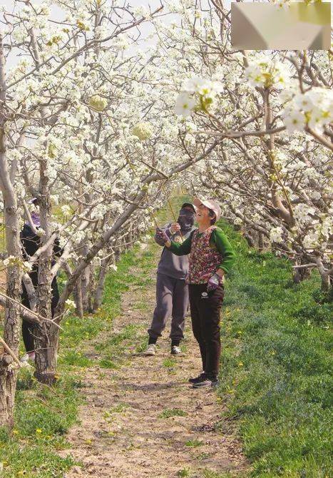 繁花之下,勤劳的农人正踮着脚尖,倾斜身子,晃动手里自制的授粉杆,为一朵朵娇艳的梨花传粉,那脸上洋溢着的笑容,似是看到了这美丽繁华的梨花,变成了秋日的累累硕果。
