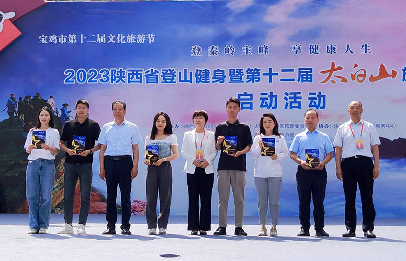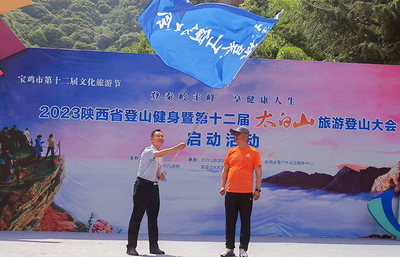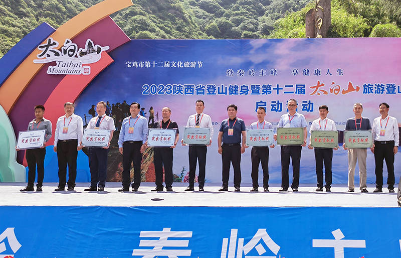 启动活动上,眉县县委书记王继萍致辞;宝鸡市文化和旅游局党组书记武云介绍2023陕西省登山健身暨第十二届太白山旅游登山大会情况;宝鸡市委常委、市政府副市长时镇,宝鸡市政协副主席李军科,宝鸡市人大常委会党组成员、二级巡视员、秘书长范同兴,眉县县委副书记、县长张小平为太白山文旅商体融合发展突出贡献企业颁奖;眉县人大常委会主任戴慧萍、眉县政协主席曲永宏、太白山旅游区管委会副主任张新林为太白山品牌推广突出贡献服务商颁奖;陕西省林业局二级巡视员徐华为“净水鸟”公益环保联合会授予“秦岭环保卫士”称号;宝鸡市体育局局长毕周海为群众登山代表授旗;最后,随着与会领导共同向启动牌中倒入金沙,标志着2023陕西省登山健身暨第十二届太白山旅游登山大会即时启动。