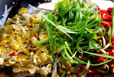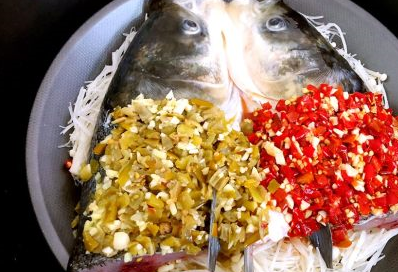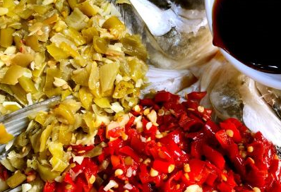 把俩种剁椒均匀的放到鱼背上,腌制10分钟