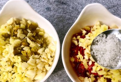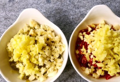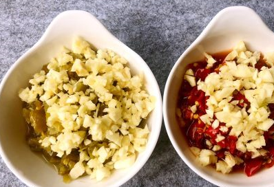 俩种剁椒里各加入2g白糖,搅拌均匀