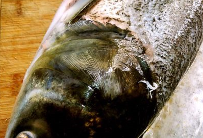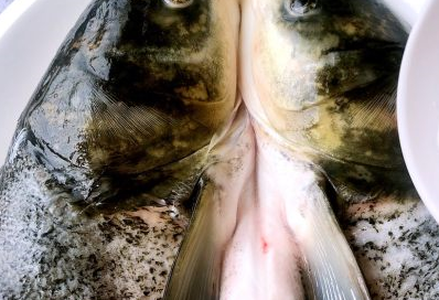 去掉鱼鳃,刮掉鱼头里面黑色那层膜,这层黑色的一定要刮干净,否则会很腥的
