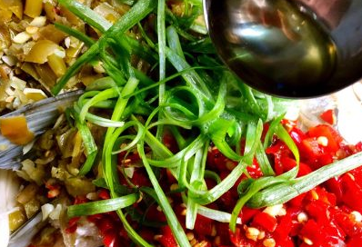 热锅烧些热油,浇到鱼头上就可以了,美味的剁椒鱼头就做好了,你们学会了吗?