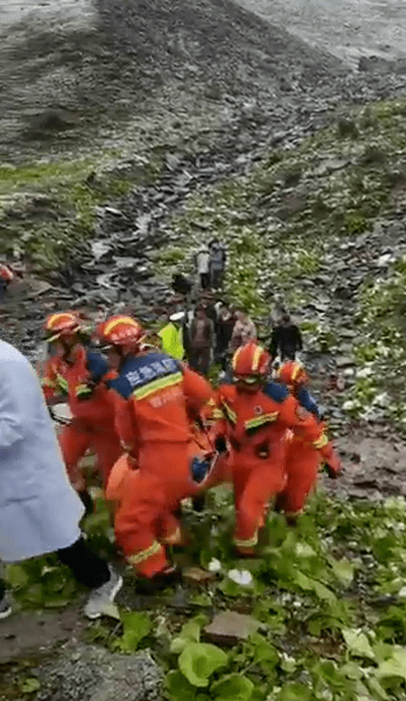 ↑事发现场救援人员正在救援