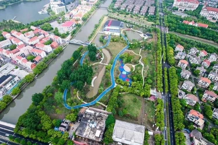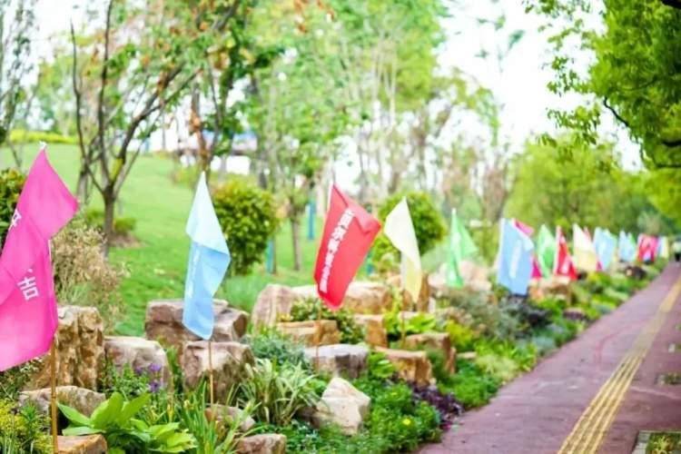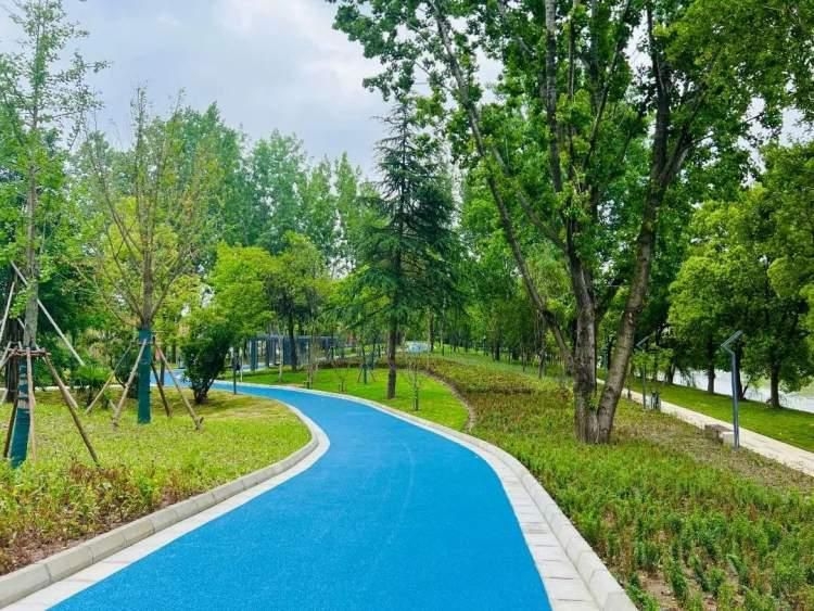 走进更新后的公园,蓝色步道蜿蜒其中,绿树花草高低错落,池水小桥点缀其间,一片绿意盎然。