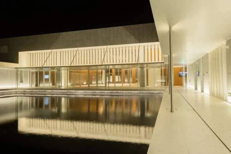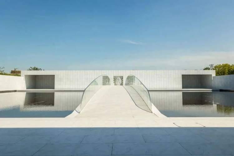 开阔的入口广场空间与言子雕塑,营造包容与开放的开放空间。经过一段水道空间豁然开朗,仿佛从城市空间步入了一处世外桃源和文化圣地。静谧的空间氛围沉淀参观者的心绪,引领人们踏上言子讲学之路。
