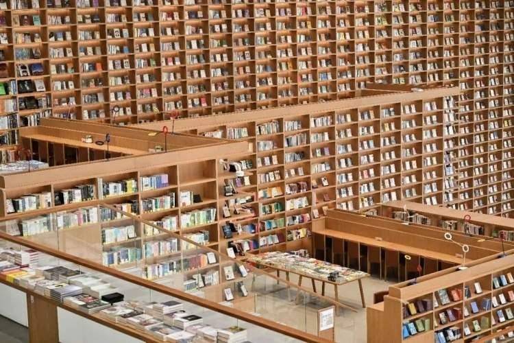 店内的书架错落、层层叠叠地一路向上展开,毫不保留地展现最重要的主角——书。这里,不仅是展示书籍的空间,更是行走与互动的场域。