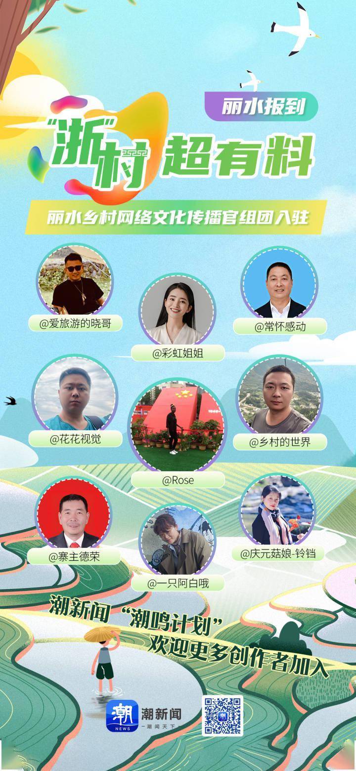 丽水以生态为名,因绿色而富,将生态优势转化为经济优势,不断激活绿水青山的发展潜能,探索出一条高质量的绿色乡村发展之路。现在,来自丽水的乡村网络文化传播官们,携着这方秀美山水和丰饶物产向我们走来啦!即日起,“‘浙’村超有料·丽水报到”丽水主题周活动正式上线,让我们一起来看看,都有哪些网络大咖加入吧!