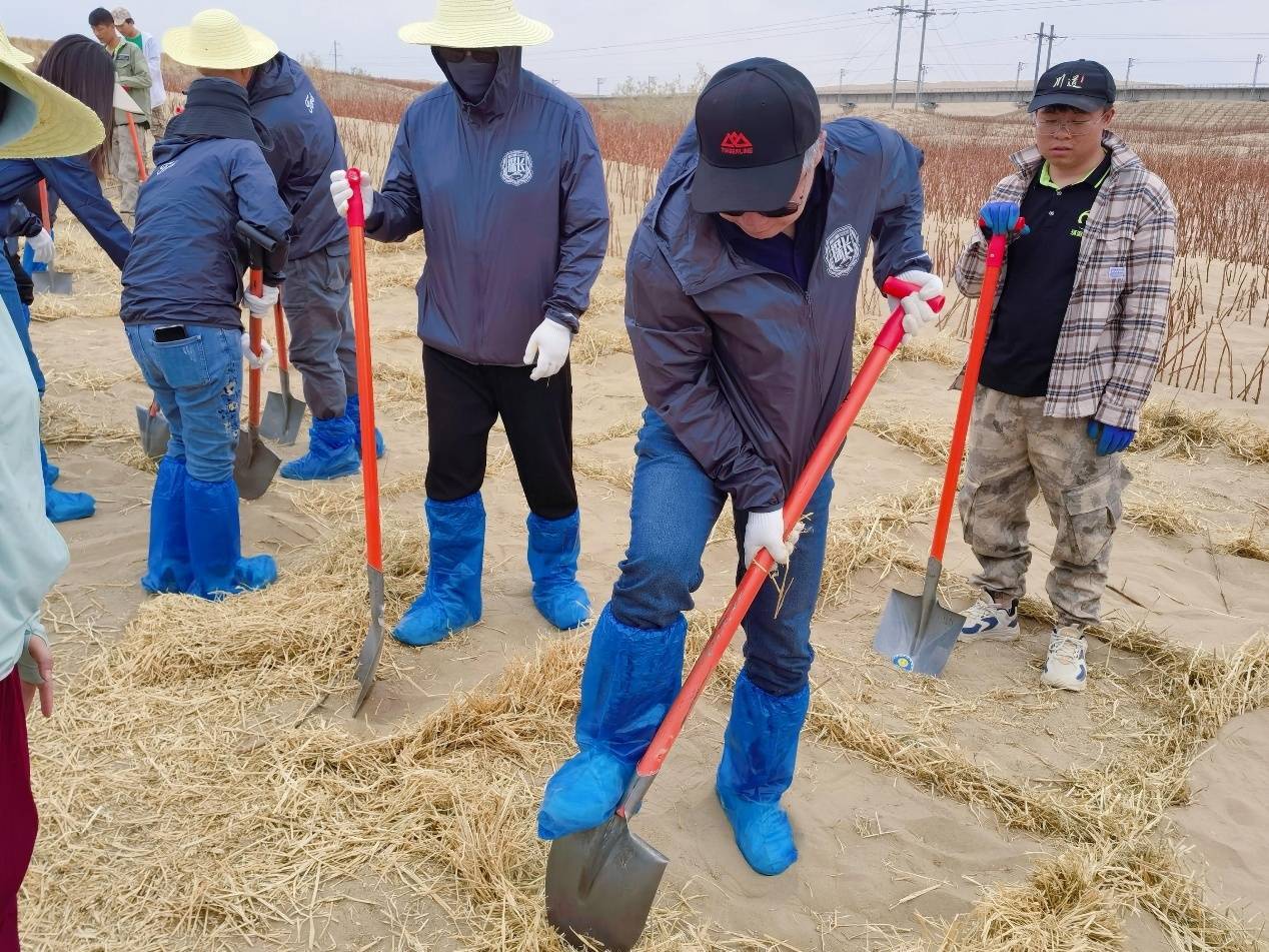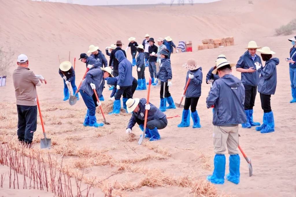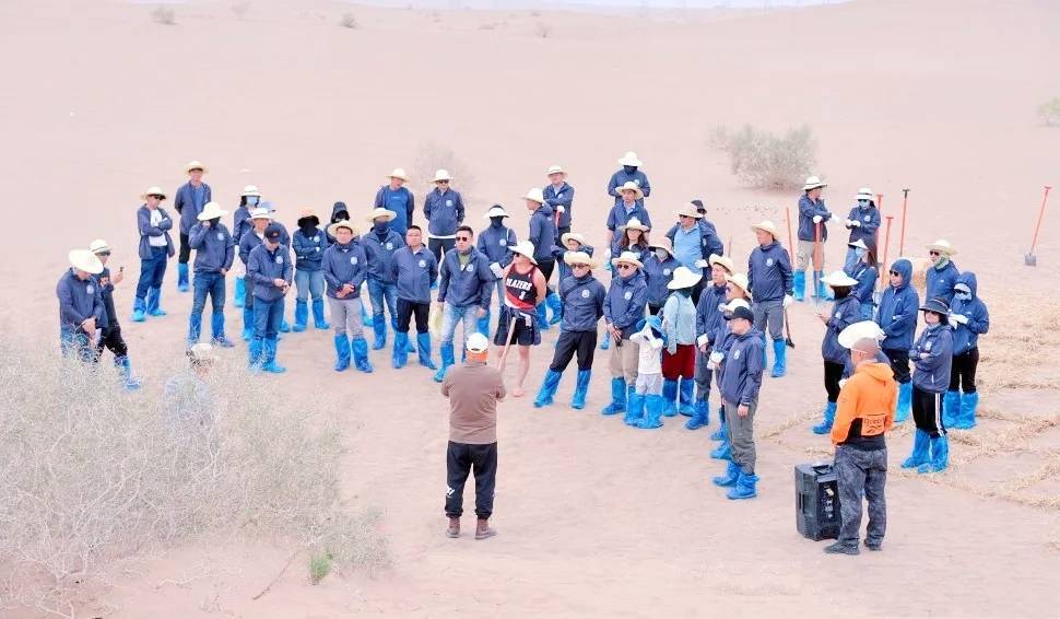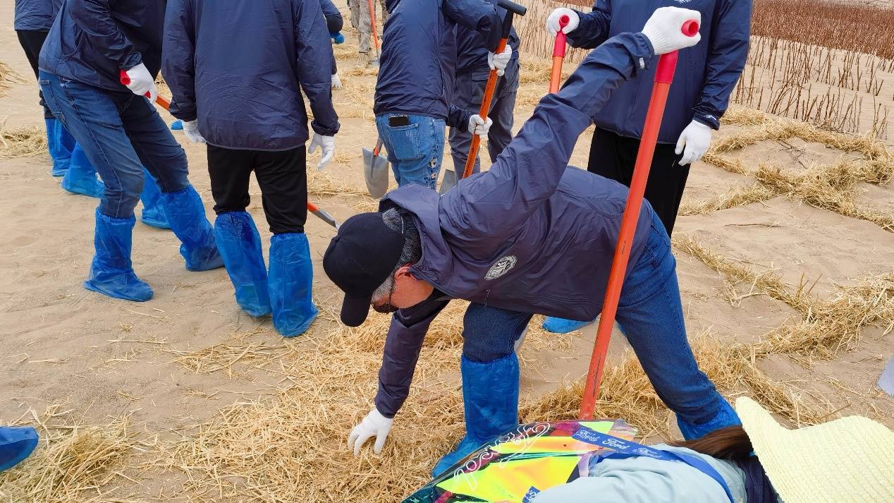 扎麦草方格,助力防风治沙环保行动,探长们来了。