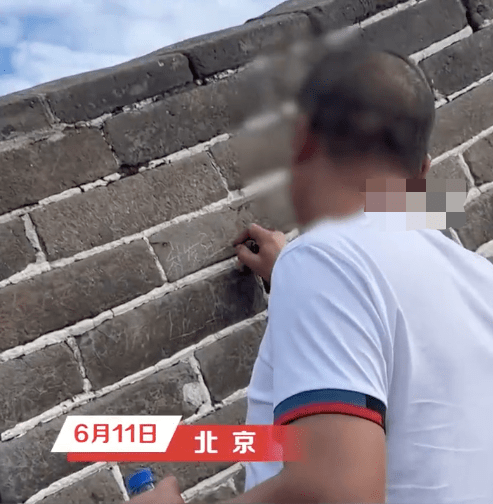 通报称,6月11日16时许,游客在八达岭长城游览时发现一男子在城墙刻字,并发布新浪微博视频。事件发生后,八达岭长城景区立即启动执法程序并向有关执法部门报案。
