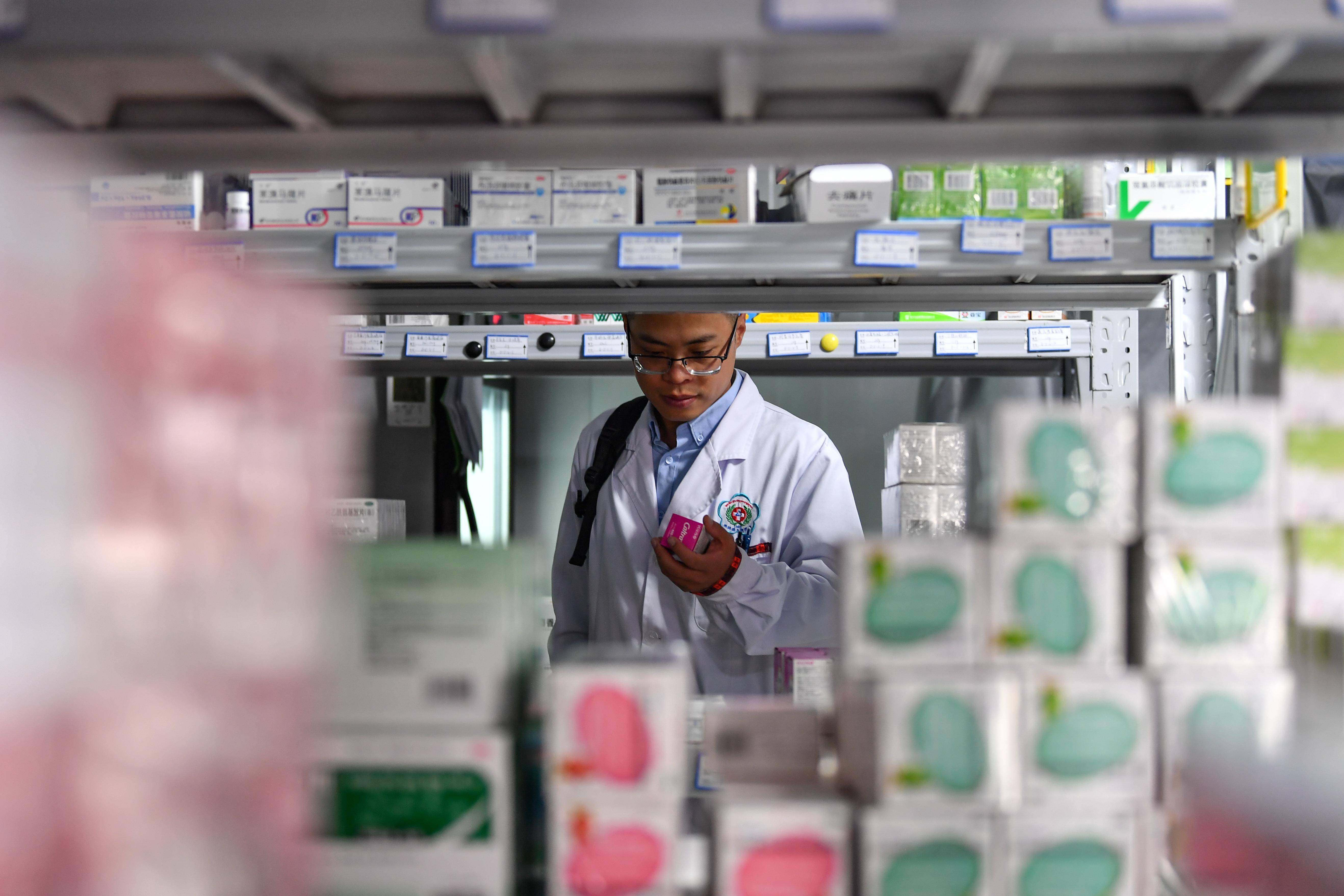 6月12日出发前,王振疆医生在米林市人民医院库房领取药品。