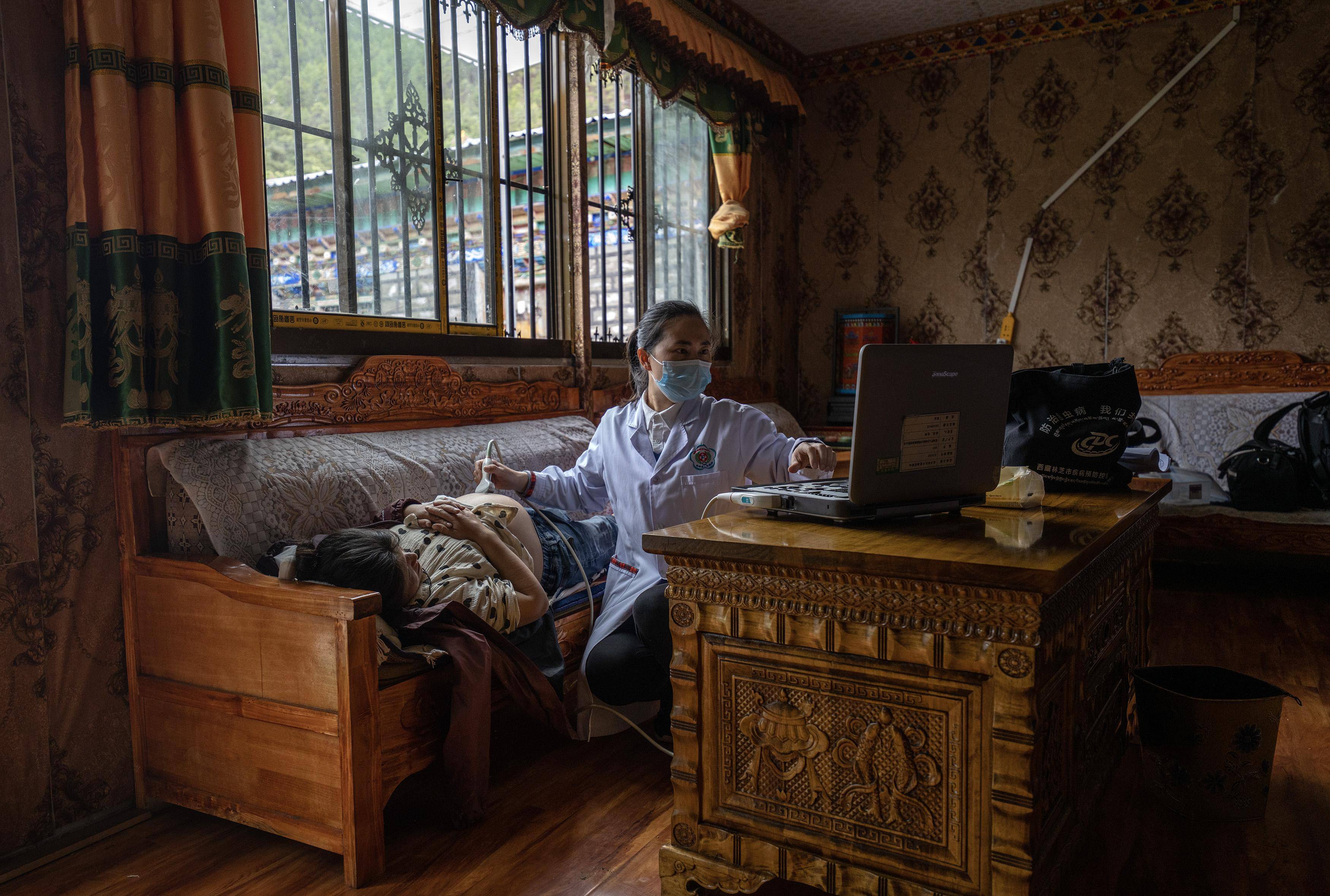 而对于已经怀孕38周的扎西央宗来说,白衣天使即将到来的消息让她激动了一天,早早就站在家门口等待。“昨天村医给我打电话说,今天县里的大夫要来给我进行产检,我特别高兴,像我这样行动不便的,坐在家里就检查了,这太好了。”