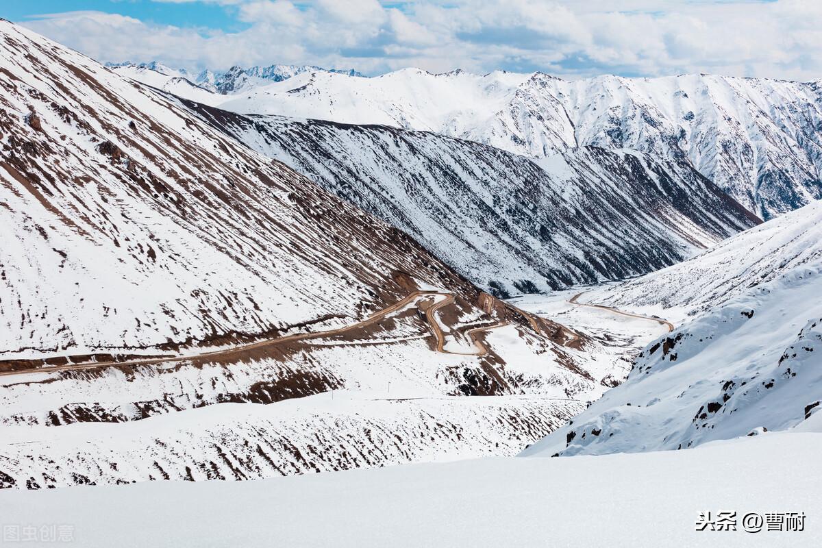 这里看到游客打卡拍照,除了肆虐的狂风和大雪,不会有任何人,甚至听不到任何声音,翻越垭口的路经常会被大雪覆盖。不过因为公路都位于雪山南面,尽管雪下得再大,路面的积雪也不会停留太久。