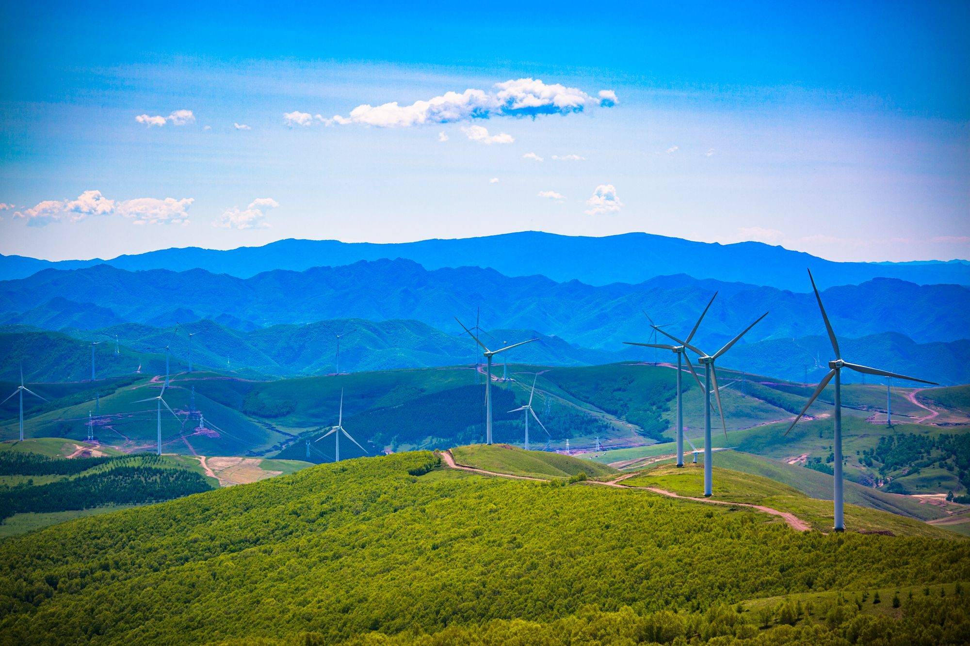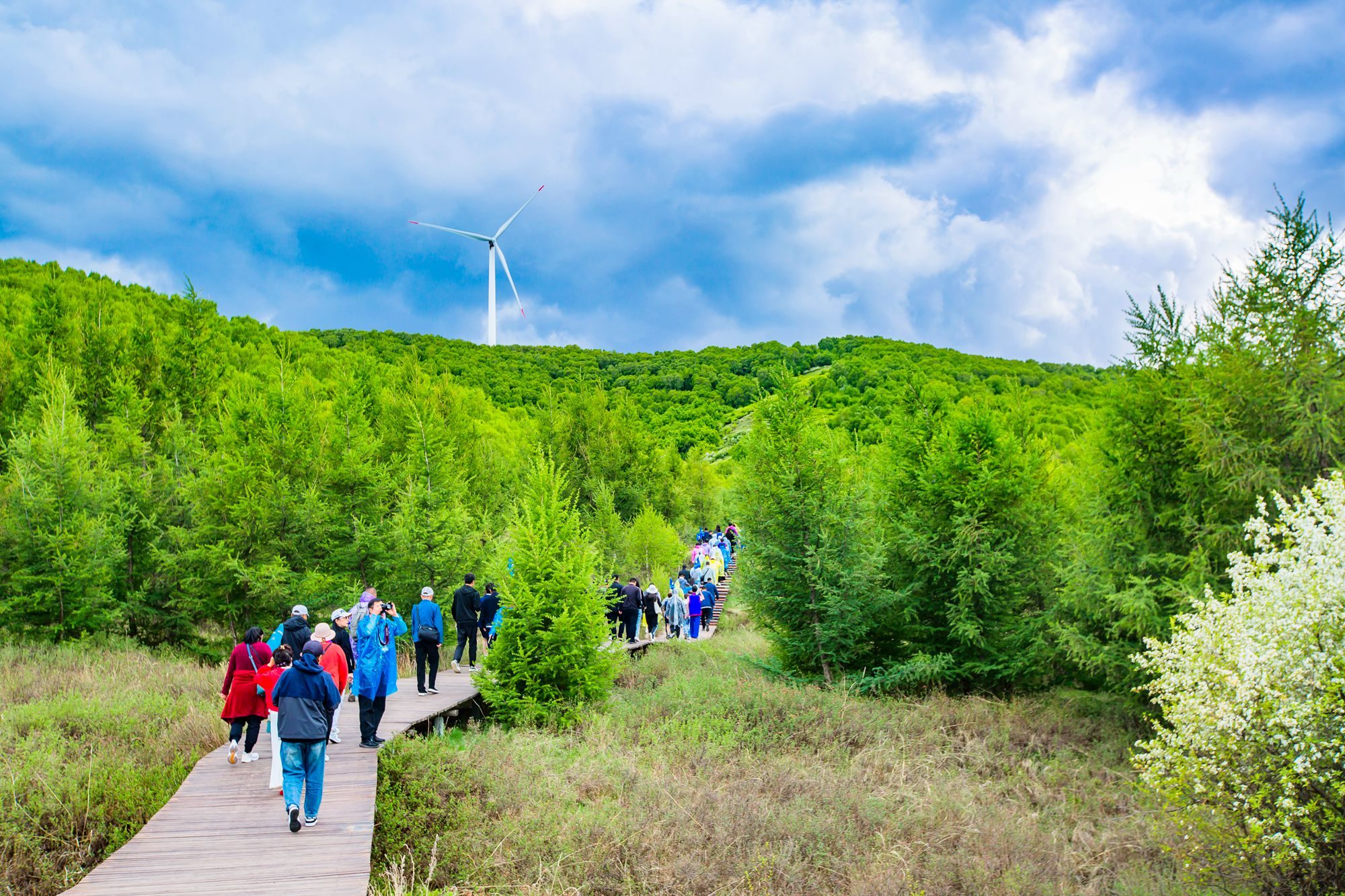 夏天是草原云海出现最频繁的季节,运气好,行走在路上就可以邂逅到场面壮观、宛如仙境的云海景象。自驾路途上,大风车一路相伴,如威武的勇士,如擎天的巨人,这是草原独有的景观。
