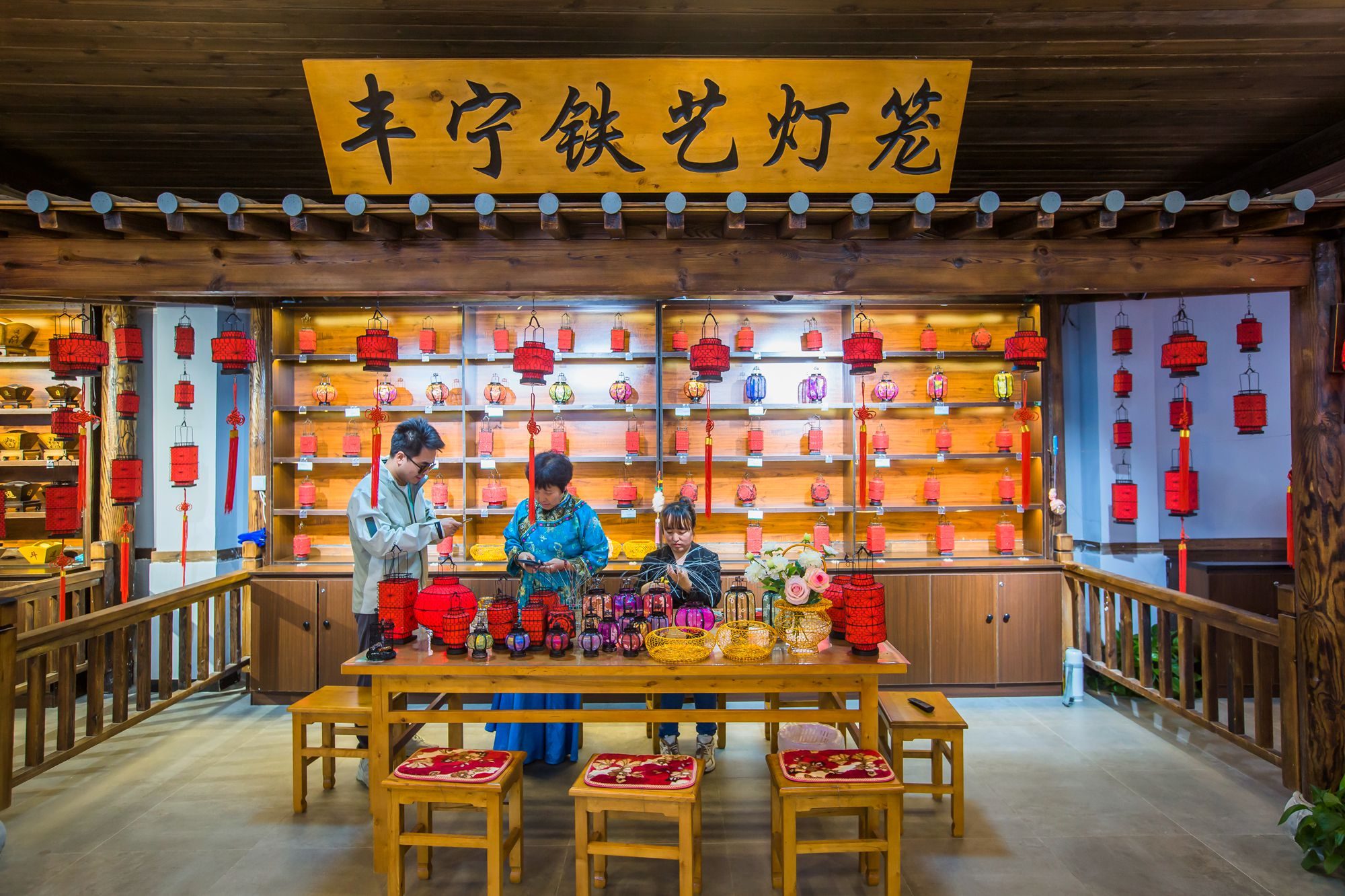 丰宁铁艺灯笼是河北省非物质文化遗产,是在传统灯笼制作技艺基础上将绘画、剪纸、编织、刺缝等工艺融入到铁艺灯笼制作中,通过拉直、拧花、盘梁、裱布等主要工序制作出造型精美、结实耐用的铁艺灯笼。游客在这里可以亲眼观看,体验其制作工艺和流程,DIY的乐趣妙不可言。