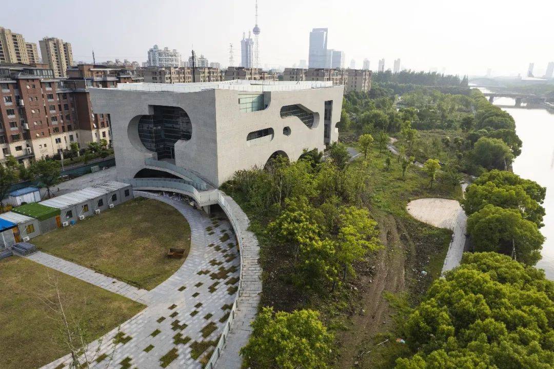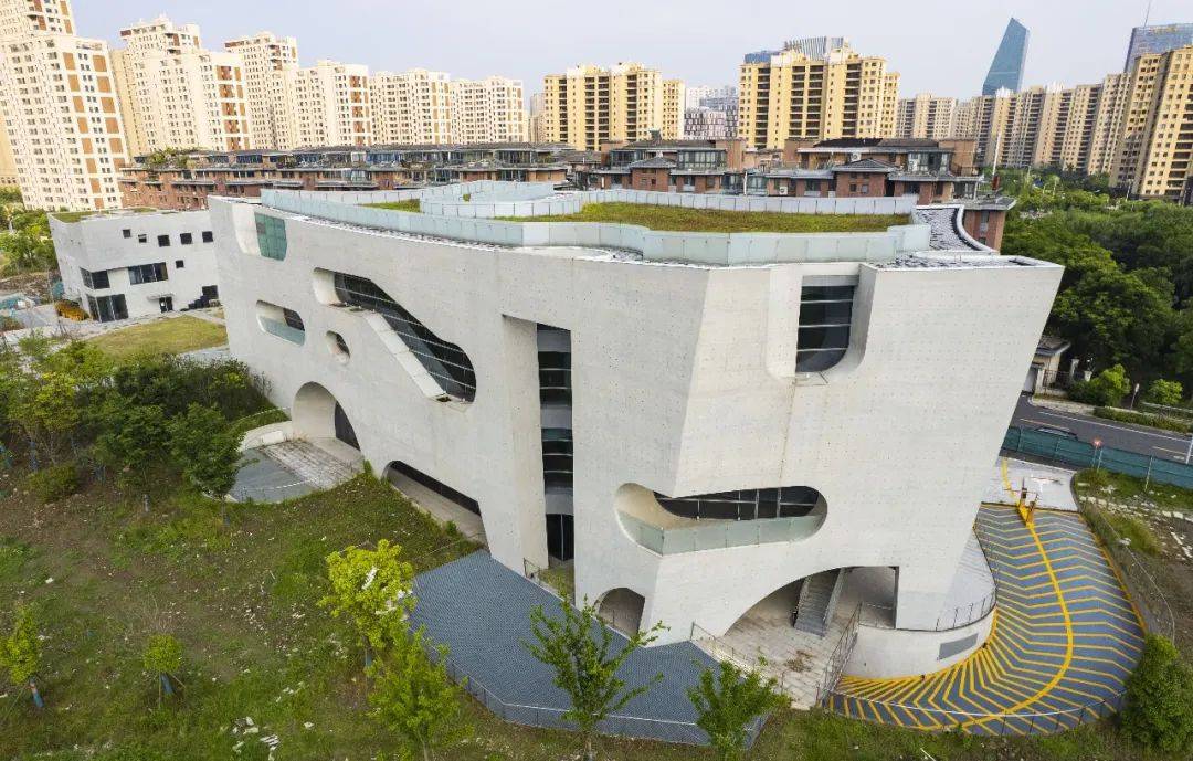 该建筑由世界建筑大师斯蒂文·霍尔设计,旨在促进健康生活与文化交流,为相邻的大型住宅社区提供绿色公共空间,曾被评为2021年度中国十大建筑。