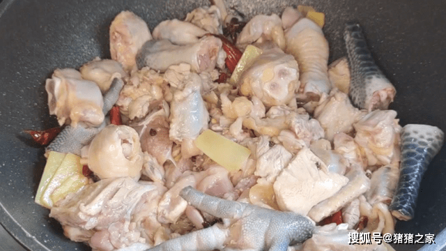 调料:油、生姜、大葱、大葱、二荆条、小米辣、料酒、花椒、八角、白芷、干辣椒、盐、胡椒粉、老抽