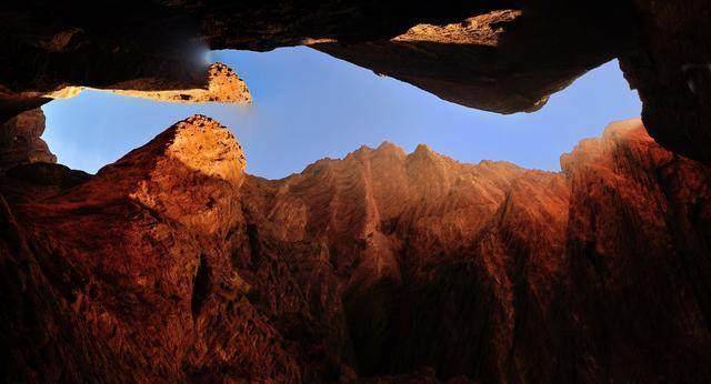 天山大峡谷,又称克孜利亚大峡谷,位于新疆阿克苏地区库车县北部,呈东向西纵深长约5.5公里,为红褐色岩石经风雕雨刻而成,峡谷曲径通幽,山体千姿百态,峰峦直插云天,沟中有沟,谷中有谷。傍晚时分,红山崖更是光彩炫目,此时的大峡谷看起来像极了《西游记》中的火焰山。