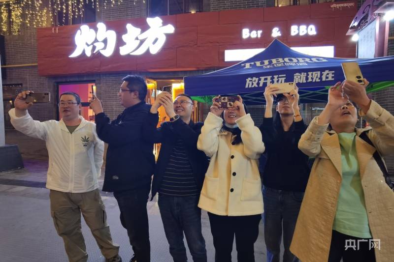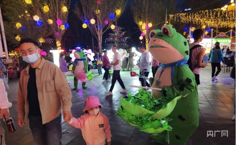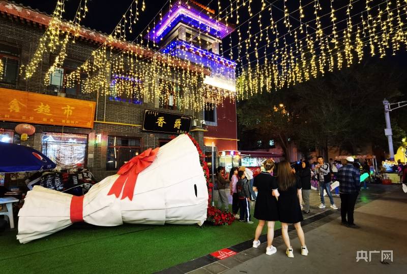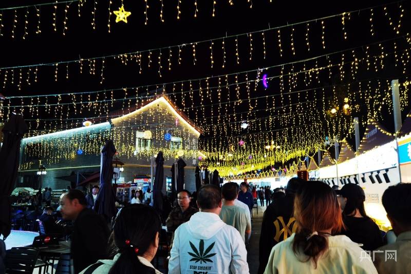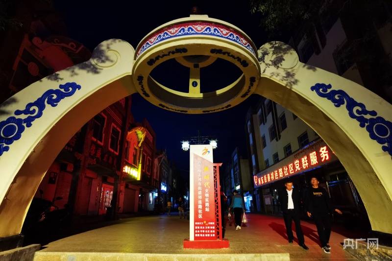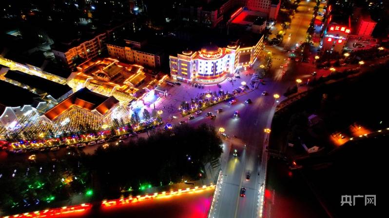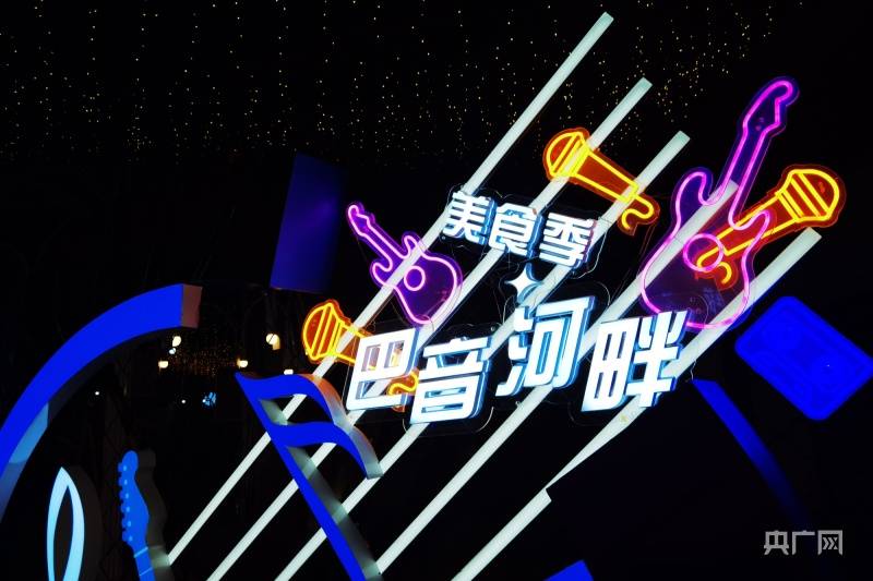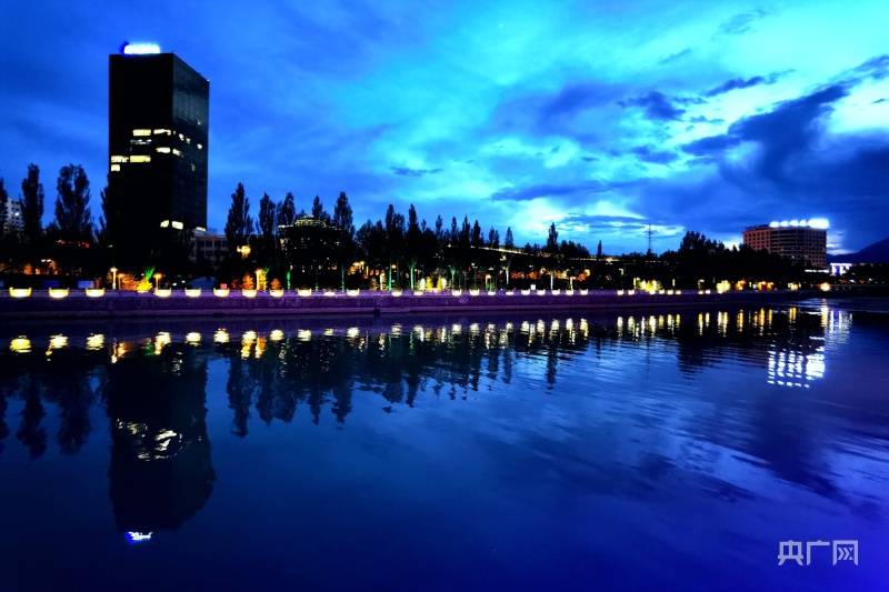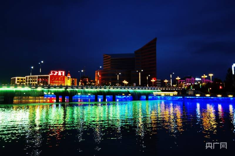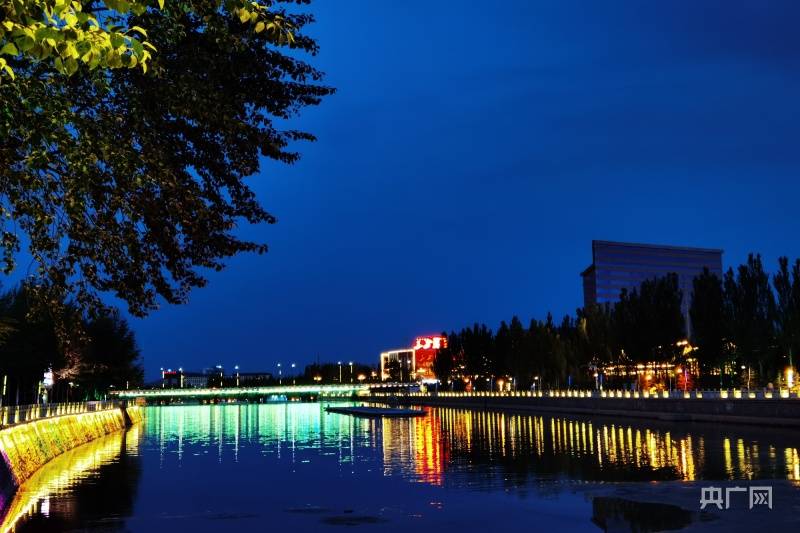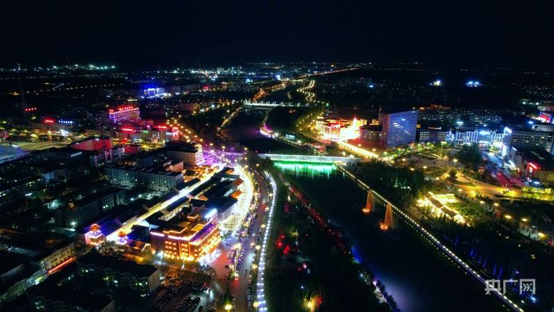 夜色中巴音河畔繁华热闹(央广网记者张海东摄)