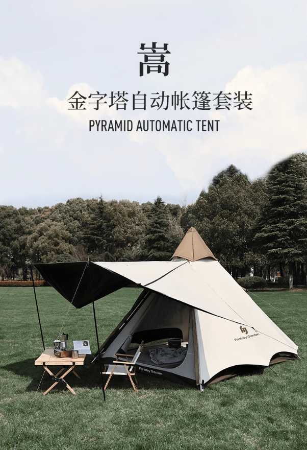 全自动伸缩杆搭建方便,是很经典的金字塔自动帐!前后双门厅、账内无中柱、顶部有透气网纱,可容纳3-4人,黑胶牛津布外账有效防晒,夏天露营也适用。