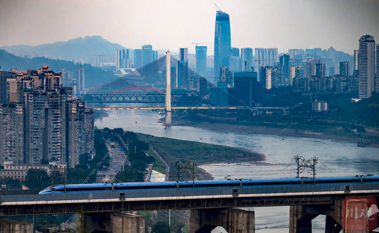 高铁行驶在金沙江公铁两用特大桥上。